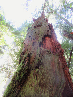 The red in Redwood trees stands out with surreal, heightened tones; the green of moss is otherworldly bright and velvety luscious to the touch; bay trees exude a mentholated scent that is almost intoxicating; and other great trees abound, such as Douglas Fir whose height and girth exceed most of the Redwoods in the forest.